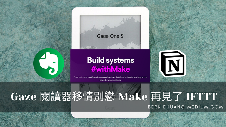 在免費的額度內這樣的服務很多,IFTTT、Zapier都是,今天我們選擇Make,沒有更多特別的原因就是因為同樣的設定,Gaze中的閱讀筆記透過 Make 成功從 Evernote 同步到 Notion,而IFTTT、Zapier失敗了。